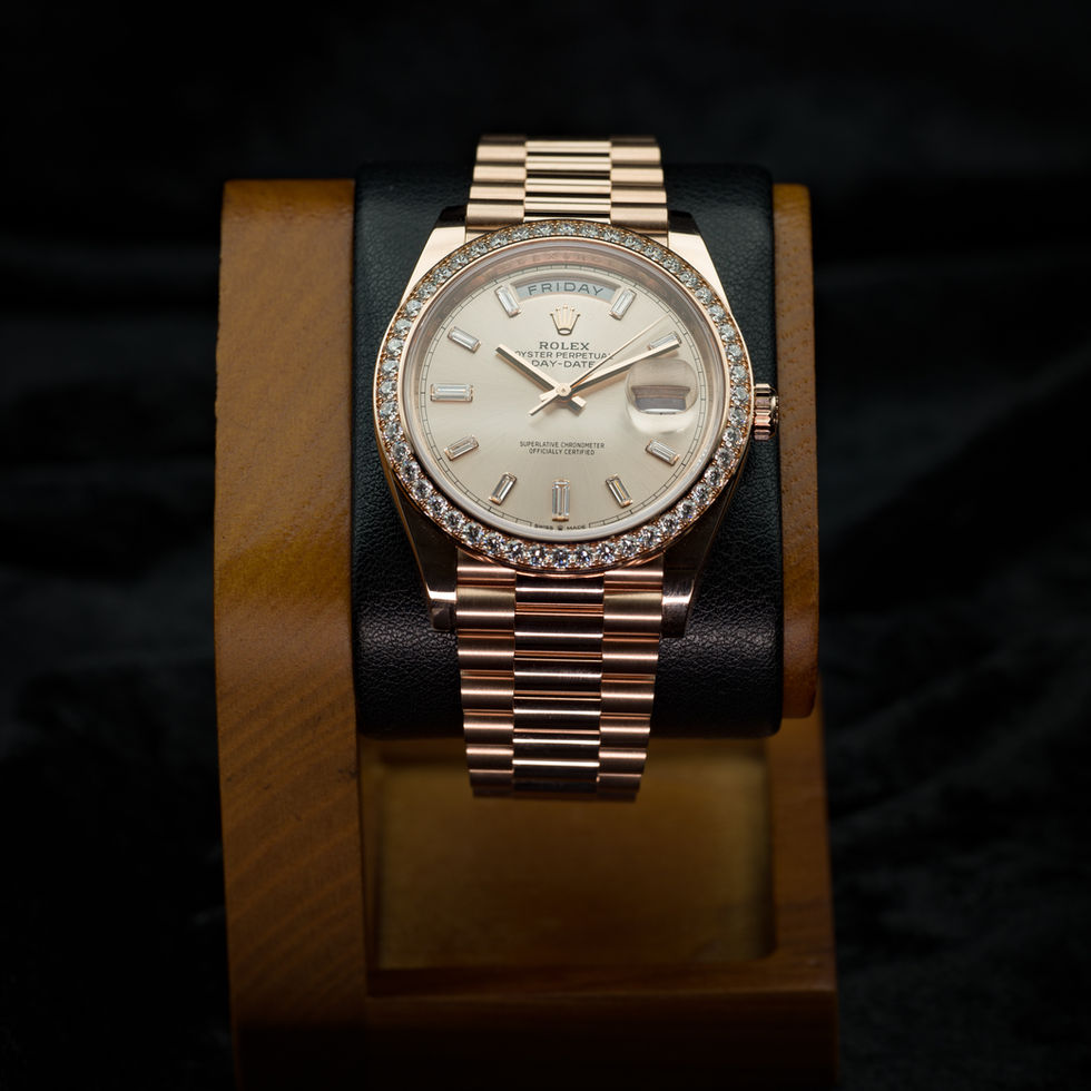 Rolex Day-Date 40 228345RBR – Sundust Dial, Baguette Diamond Markers